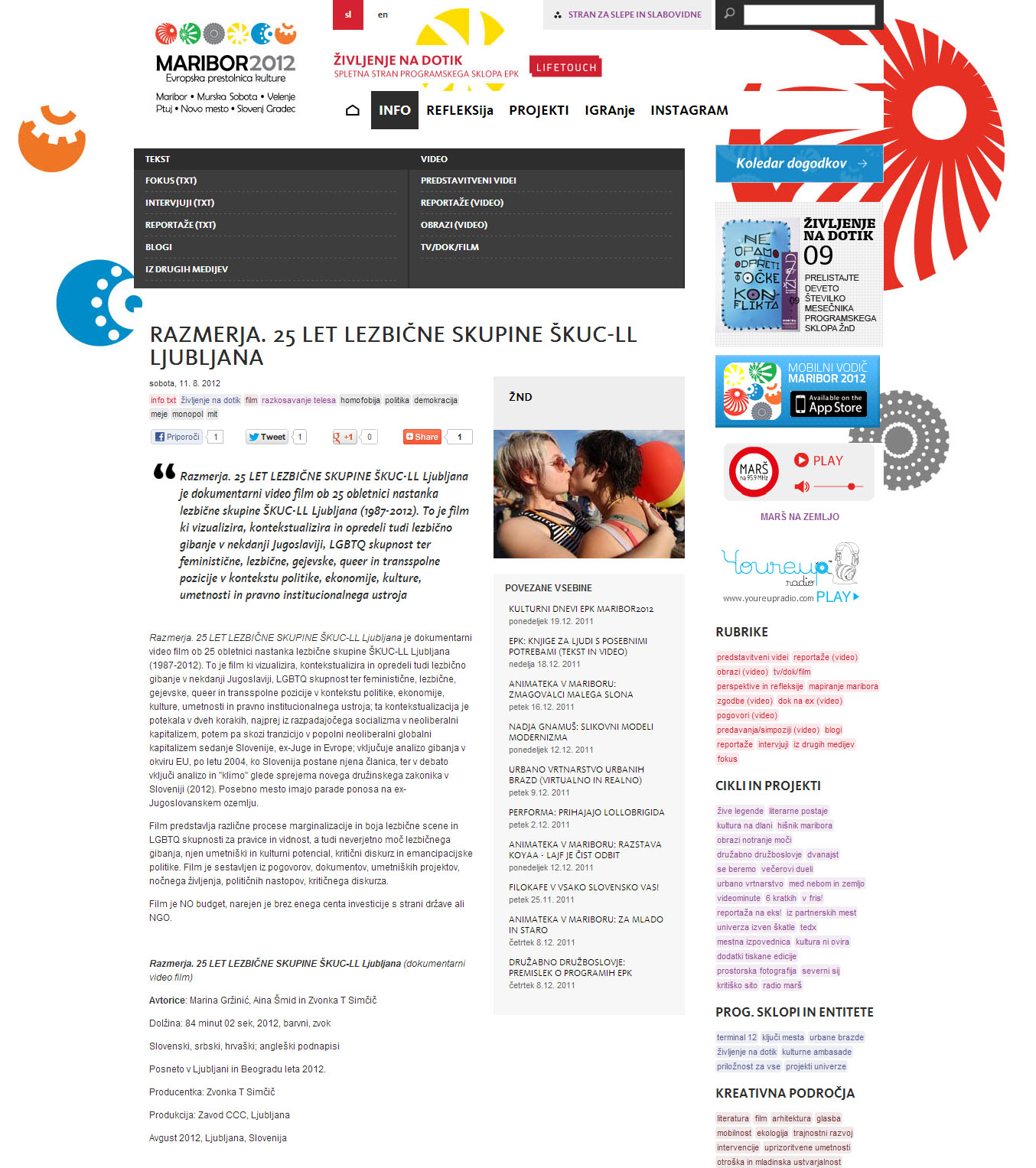 Here are some print-screens of the news about film and upcoming premiere (in Slovenian language):