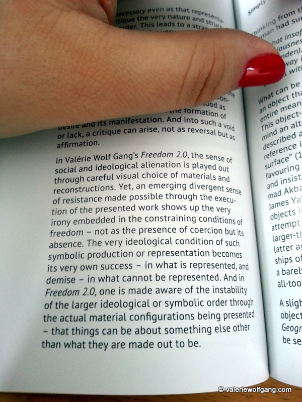 One of my recent works FREEDOM 2.0 (video installation) is analysed by art critique Lawrence Chin in Singaporean annual art journal ISSUE 1: LAND. It is not published yet but I had the chance to see one of the first copies today!