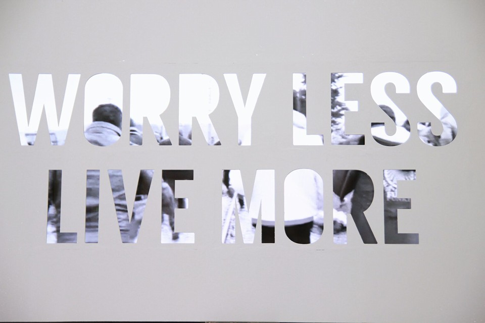 It was thus that the cut-out slogans were created: Life is good, through which we observe natural disaster videos, floods and fires, all of which are an everyday part of our lives; Enjoy the little things, and behind it a video on poverty and precarious work, i.e. work carried out in impossible conditions. Dream imagine believe is a visualization testifying to the violence that goes on in the streets, to the burglaries, fights, and protests pointing to global violence. The theme behind Make your dreams happen is Black Friday, when huge masses of people raid shopping malls for special price offers and discounts, it is concerned with consumerist hysteria in general. Relax is about industrial food production and factory farming, where animals are being massively raised and then slaughtered one after the other – to become food for all of us. Do more of what makes you happy is a documentary on human trafficking and illegal prostitution, while Worry less live more tells the story of our “hospitality” towards immigrants, which is only temporary or seeming, or is not there at all, pointing to our total lack of compassion and understanding of what “being different” stands for.