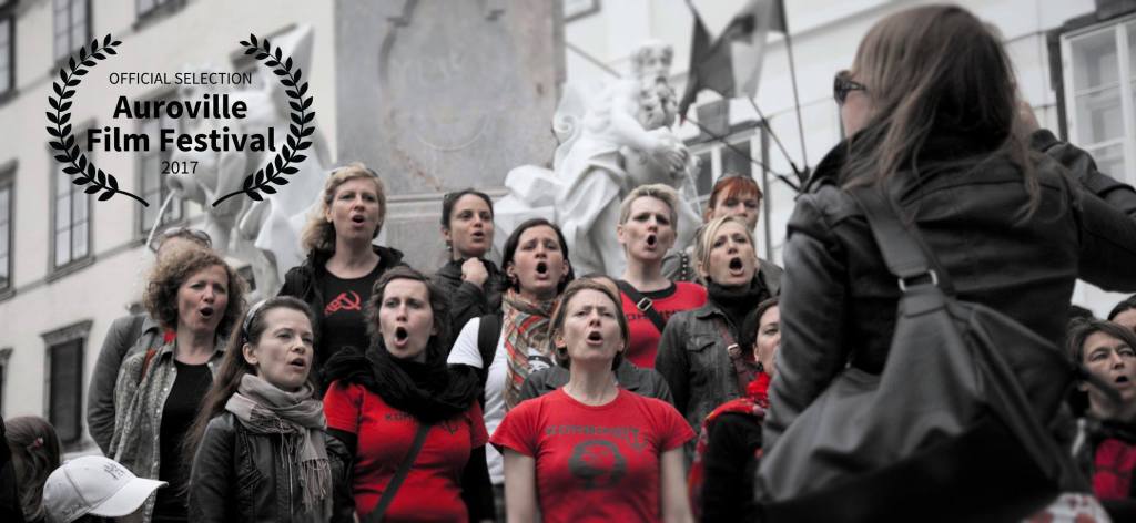 “Female choir Kombinat Ženski Pevski Zbor is a group of girls who met for the founding meeting in Rog squat, Ljubljana on Resistance Day, 27 April 2008, to sing songs of resistance from around the world. Though their story, we follow the development and organisation of a community of women who want to change the world by singing, as well as the current political reality and developments in society in Republic of Slovenia. The film traces the moments and songs turning into meaningful records of time.”