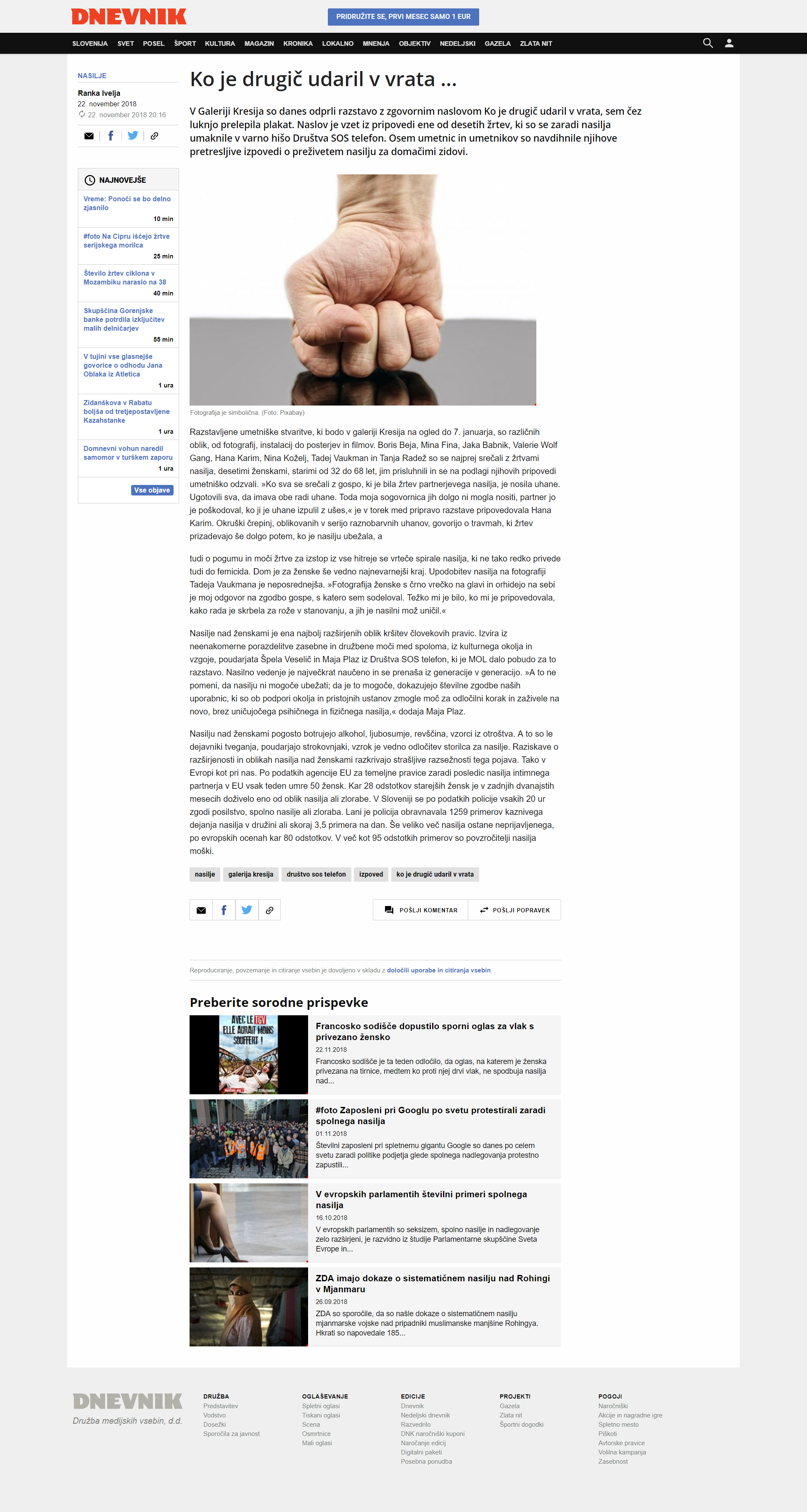 The work was exhibited in Gallery Kresija as part of the project: “Ko je drugič udaril v vrata, sem čez luknjo prelepila plakat”