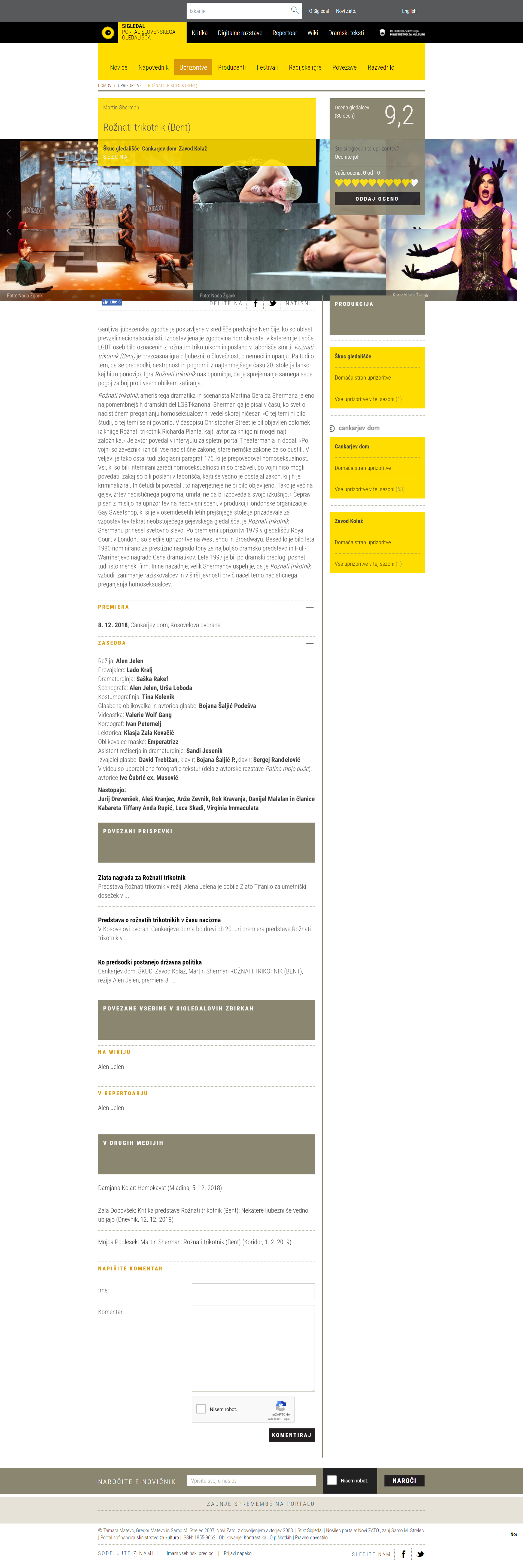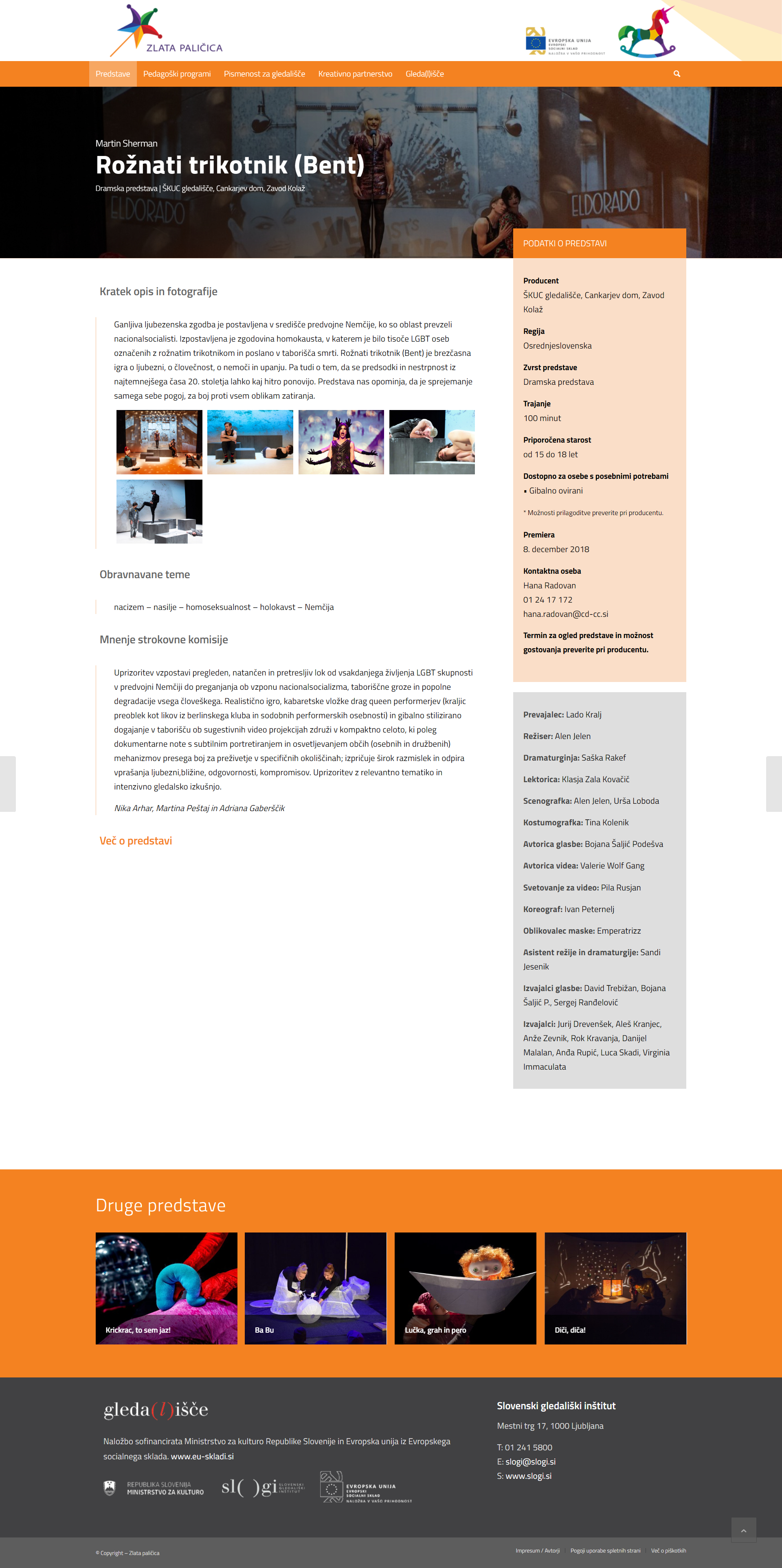 Less than 25 years ago, Sherman’s play (1979), revolving around the issue of homosexuality in Third Reich, was shunned by all institutional theatres. The time for an examination of such issues was simply not ripe in Slovenia. Today, the story about the persecution of gays in Nazi Germany has better chances of being staged institutionally. Nevertheless, current theatre repertoires reveal that works addressing such specific, marginal issues are still sparsely programmed. The play remains of relevance today, at a time of rising right-wing extremism and Nazism. The production fuses elements of drama, sound and video.