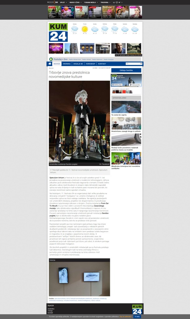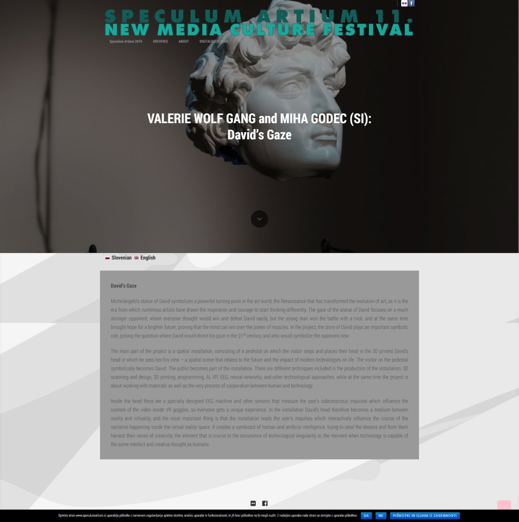 Interactive installation David’s Gaze by Wolf Gang and Godec was part of the International New Media Arts Festival Speculum Artium 2019 in Trbovlje.